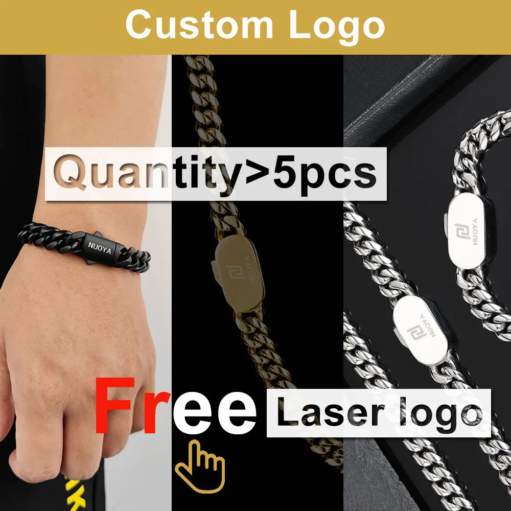 NUOYA High Quality Stainless Steel Cuban Link Chain 18K Gold Plated Miami Cuban Link Chain Necklace Men's Hip Hop Jewelry