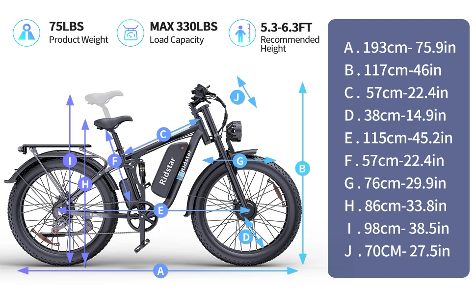 Full Suspension & Hydraulic Dual Brakes: 100% reinforced front suspension fork improves maneuverability on rough terrains. Superior performance with rear hydraulic shock absorber. Hydraulic dual brakes decrease braking distance by 50%. 26 x 4.0'' fat tires enhance riding stability on all terrains