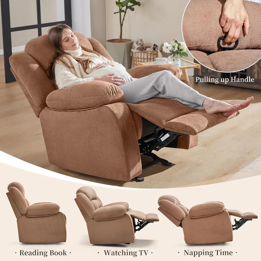 - Easy to Use: The glider rocking chair reclines smoothly with a pull ring and includes a side pocket for storing remotes or magazines, keeping everything within reach.