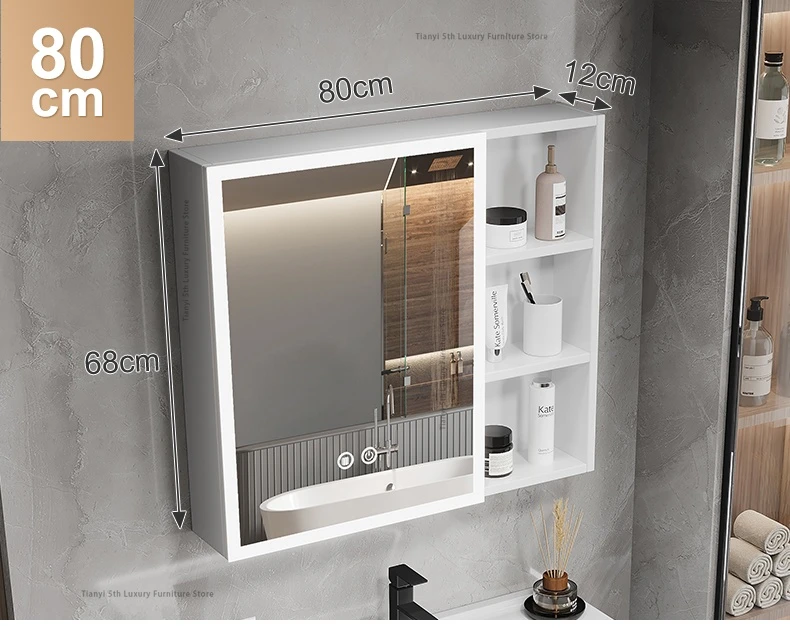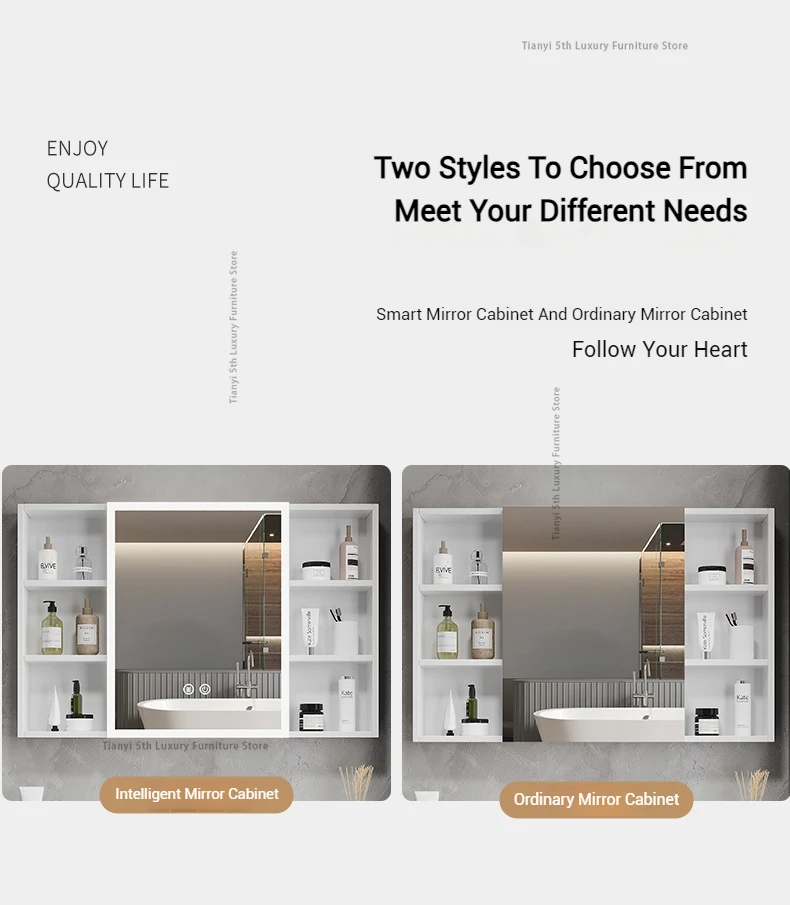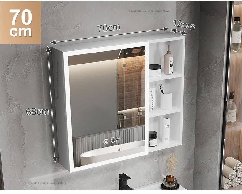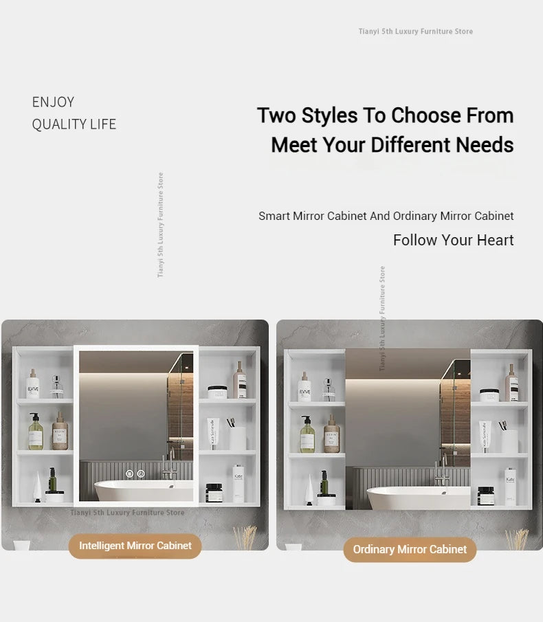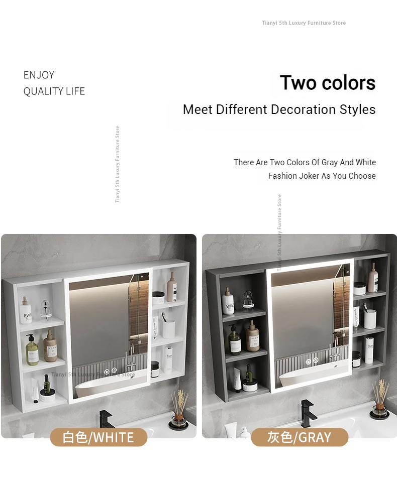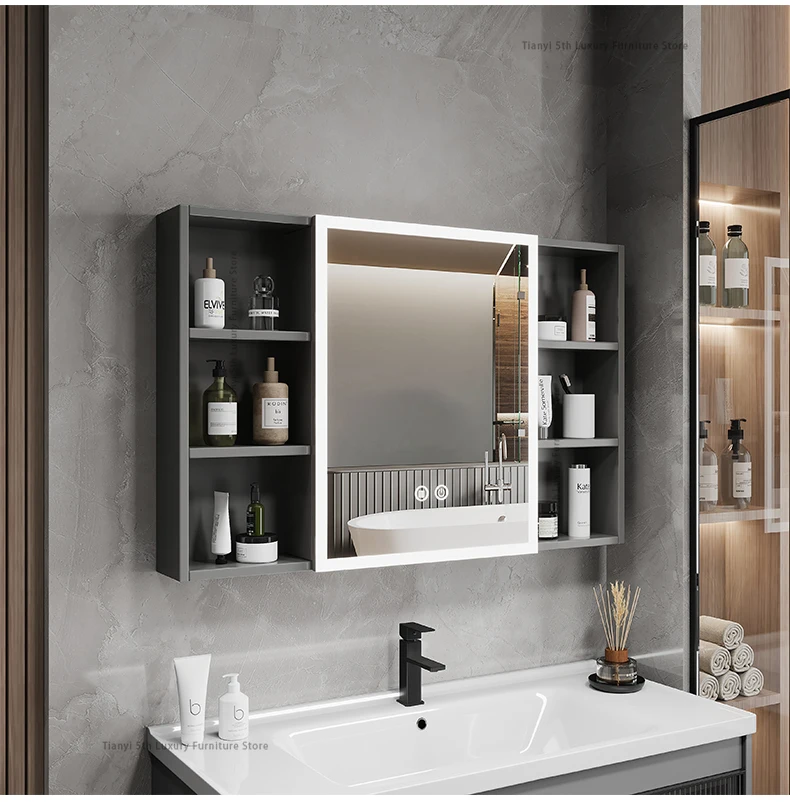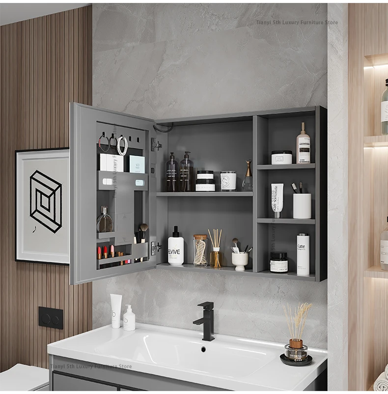 Space Aluminum Bathroom Mirror Wall-mounted Make Up Vanity Storage Mirror Cabinet Shelves Home Furniture Muebles Bano FYBC