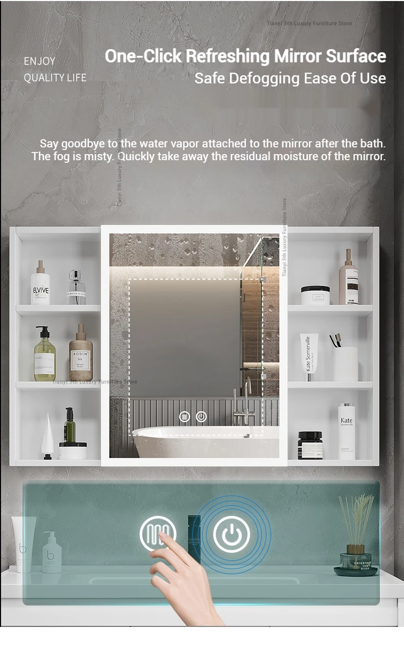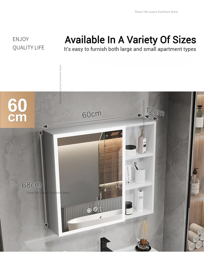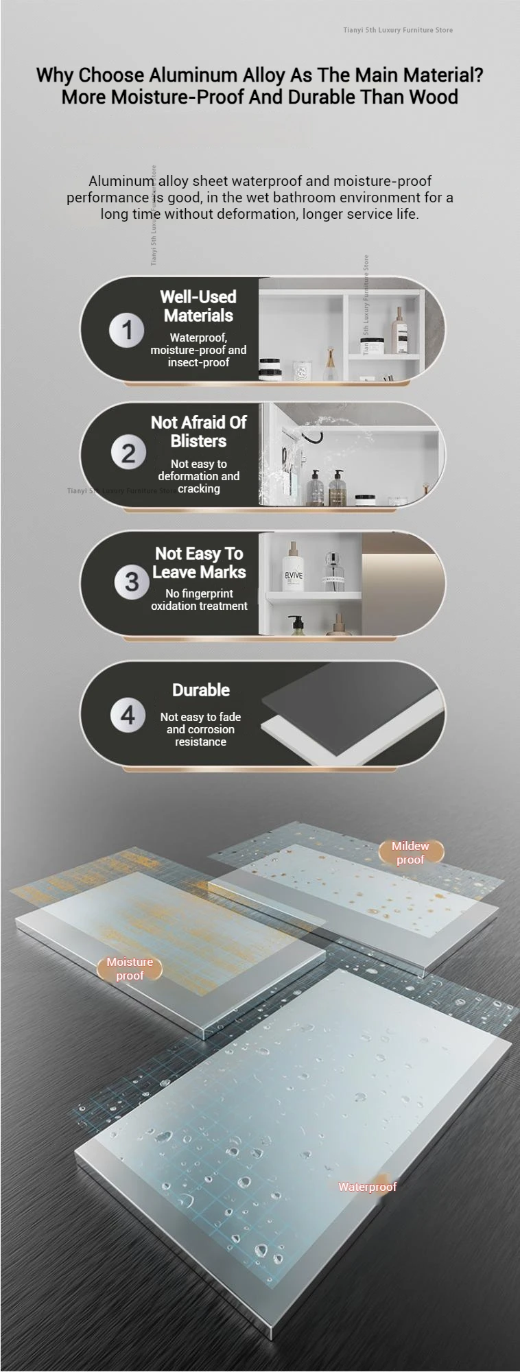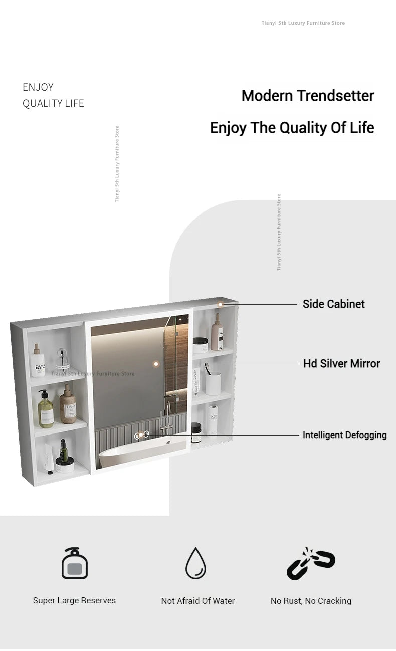 Space Aluminum Bathroom Mirror Wall-mounted Make Up Vanity Storage Mirror Cabinet Shelves Home Furniture Muebles Bano FYBC