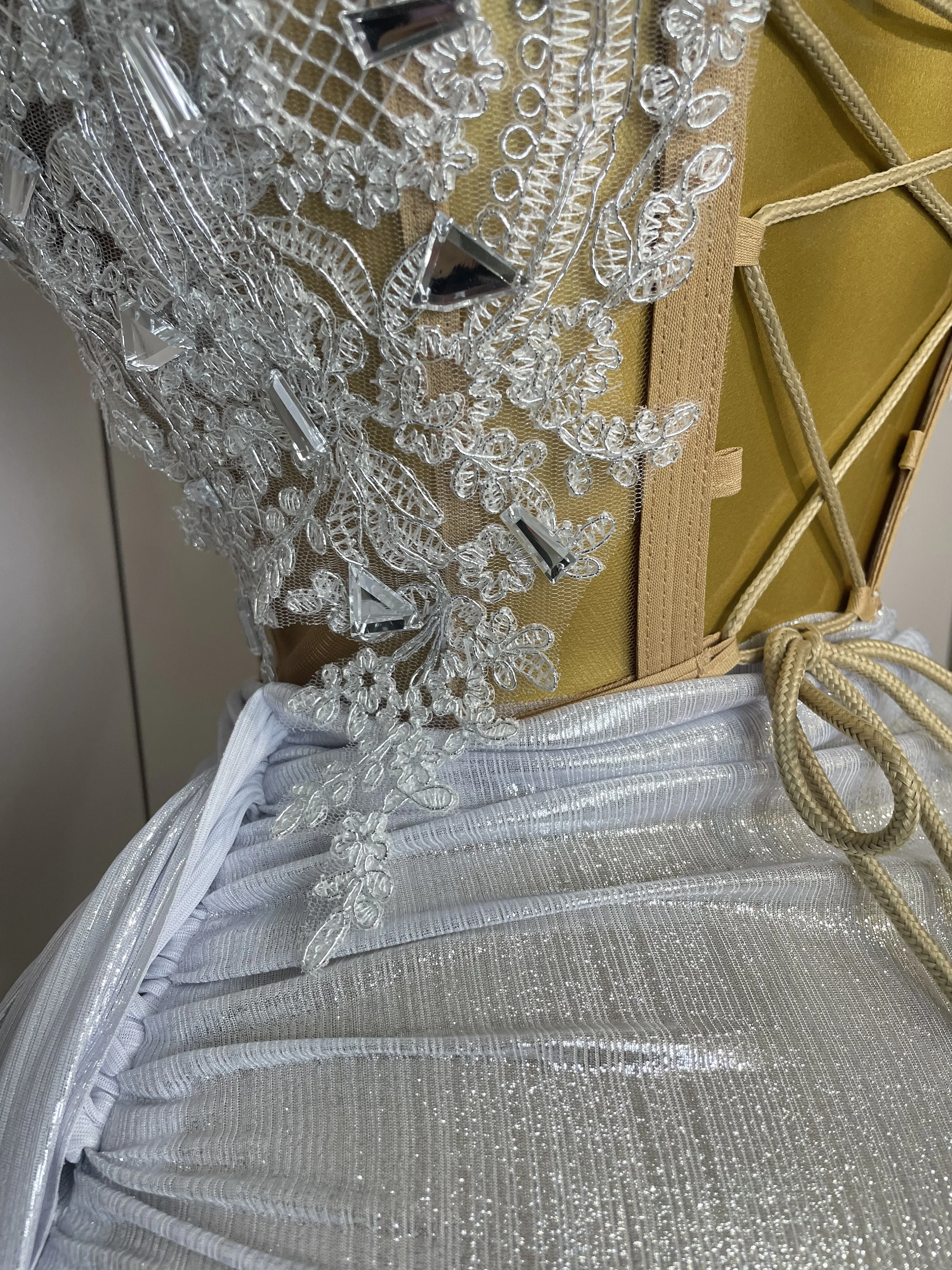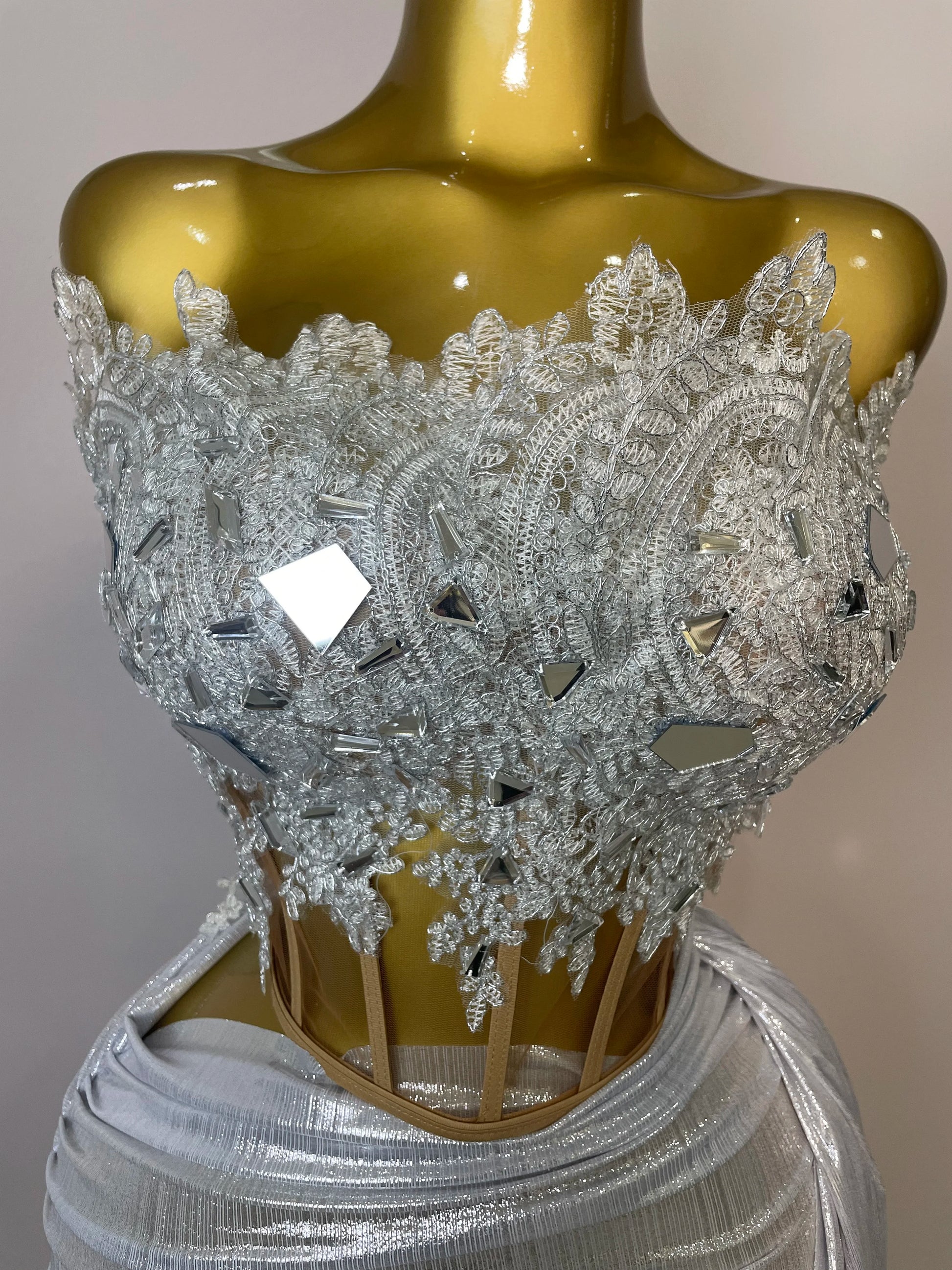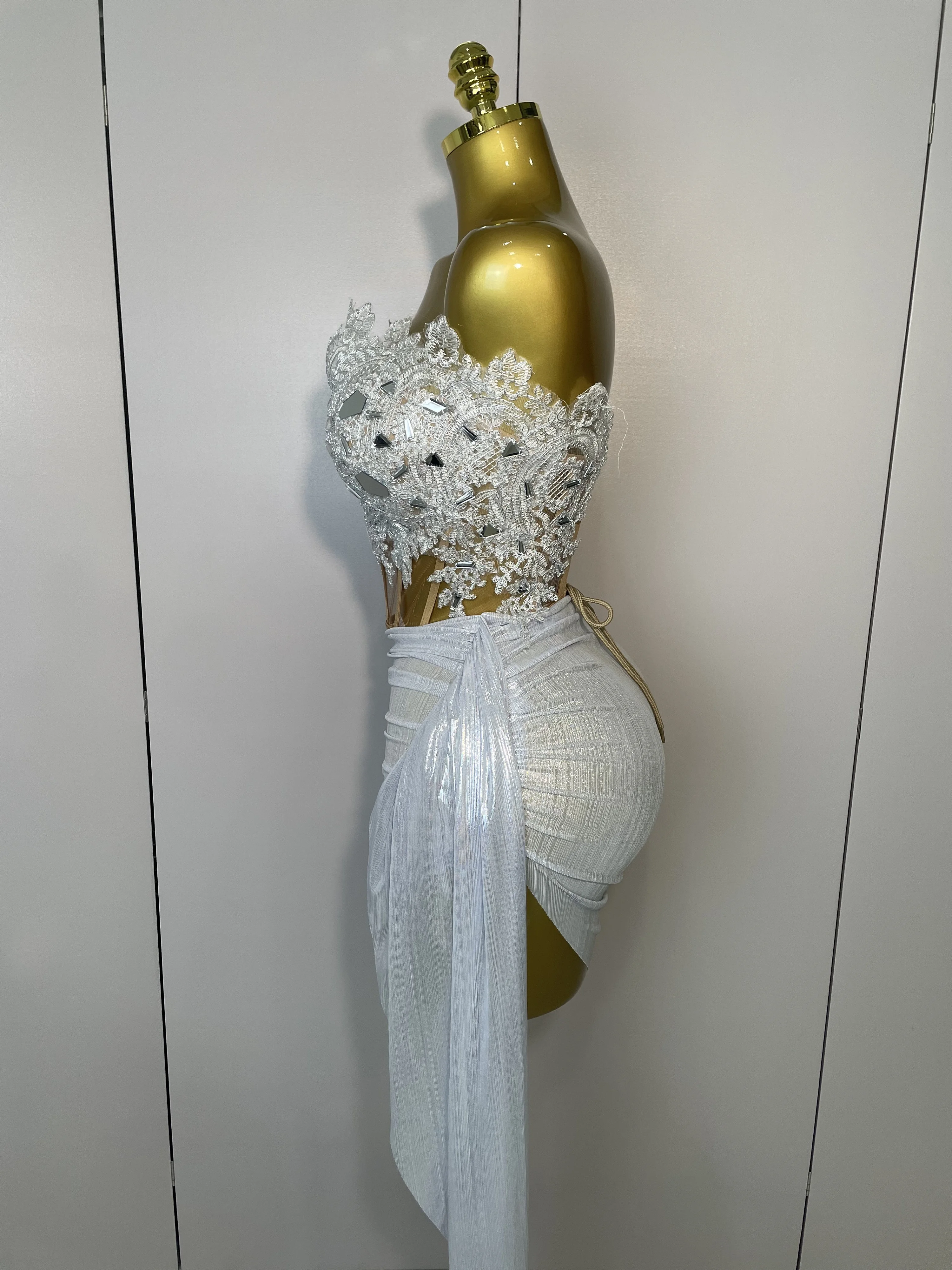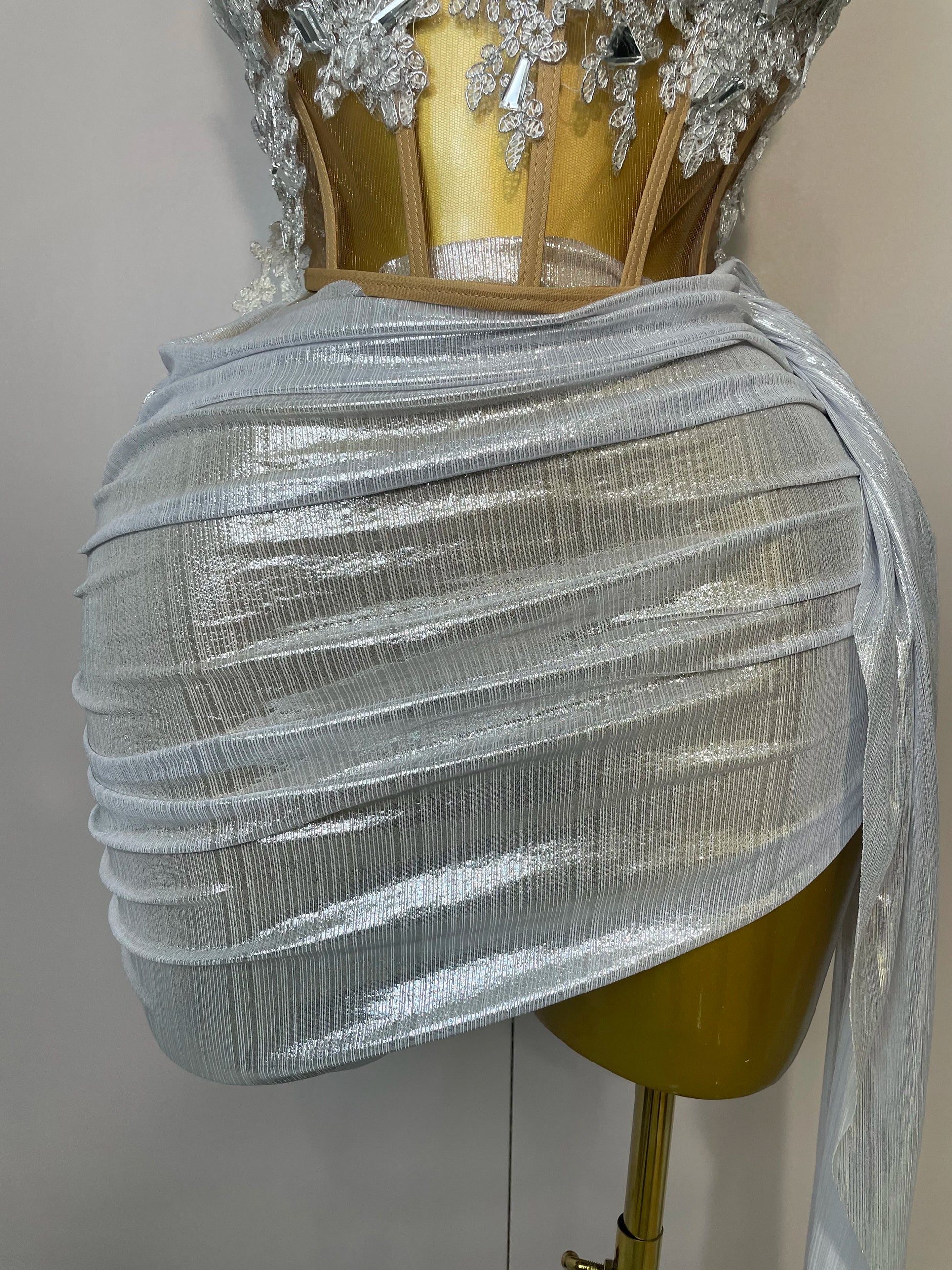 Sparkly Silver Sequins Sexy Strapless Short Dress 2Pcs Set Newest 2025 Women Party Birthday Nightclub Singer Dancer Stage Wear