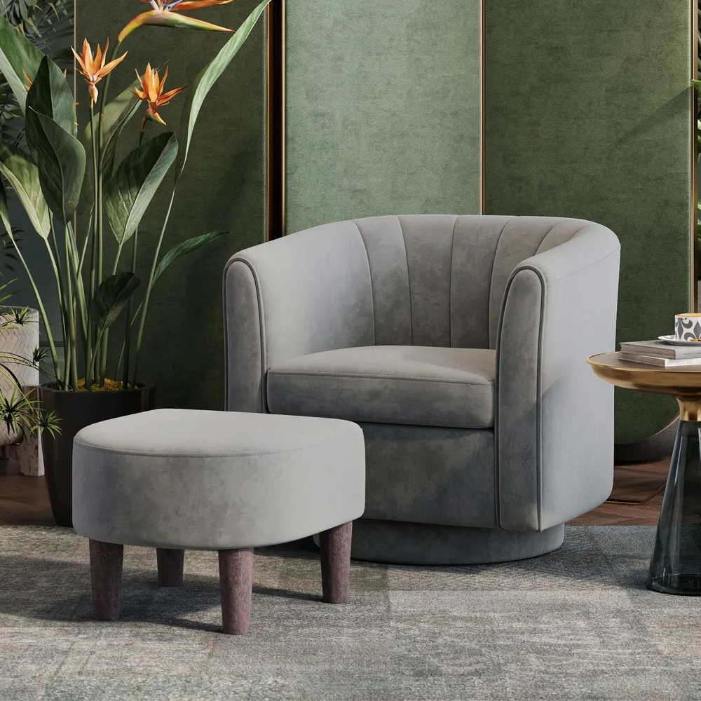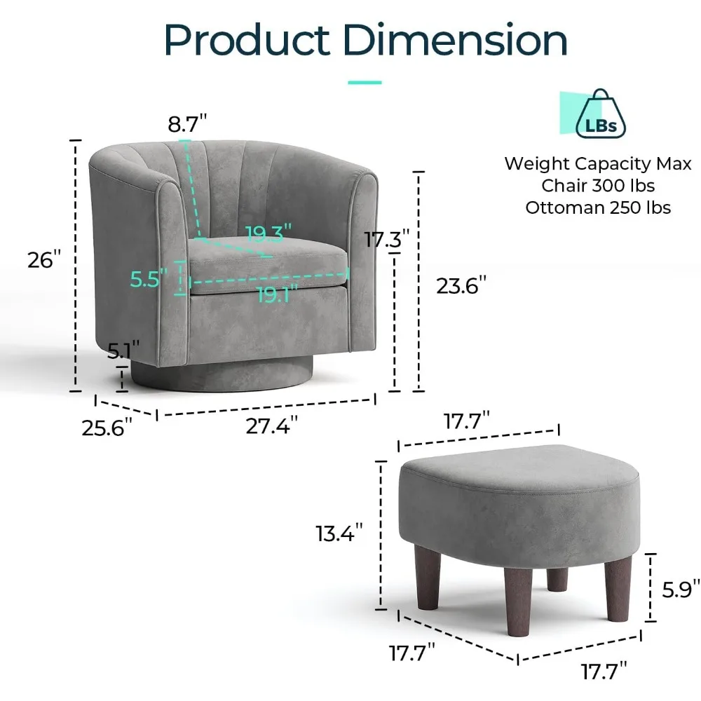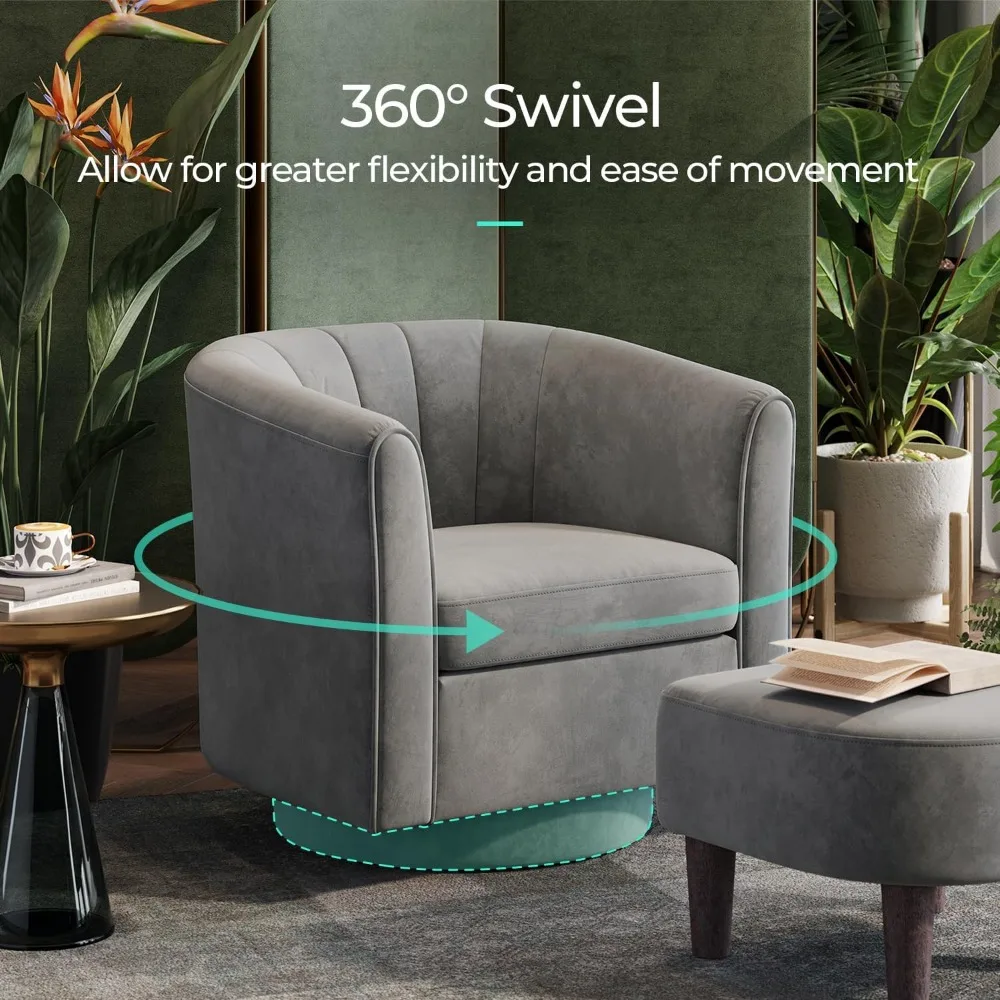 Swivel Accent Chair Ottoman Set: Velvet Small Barrel Chair with Foot Rest, Modern Reading Chair Upholstered Armchair