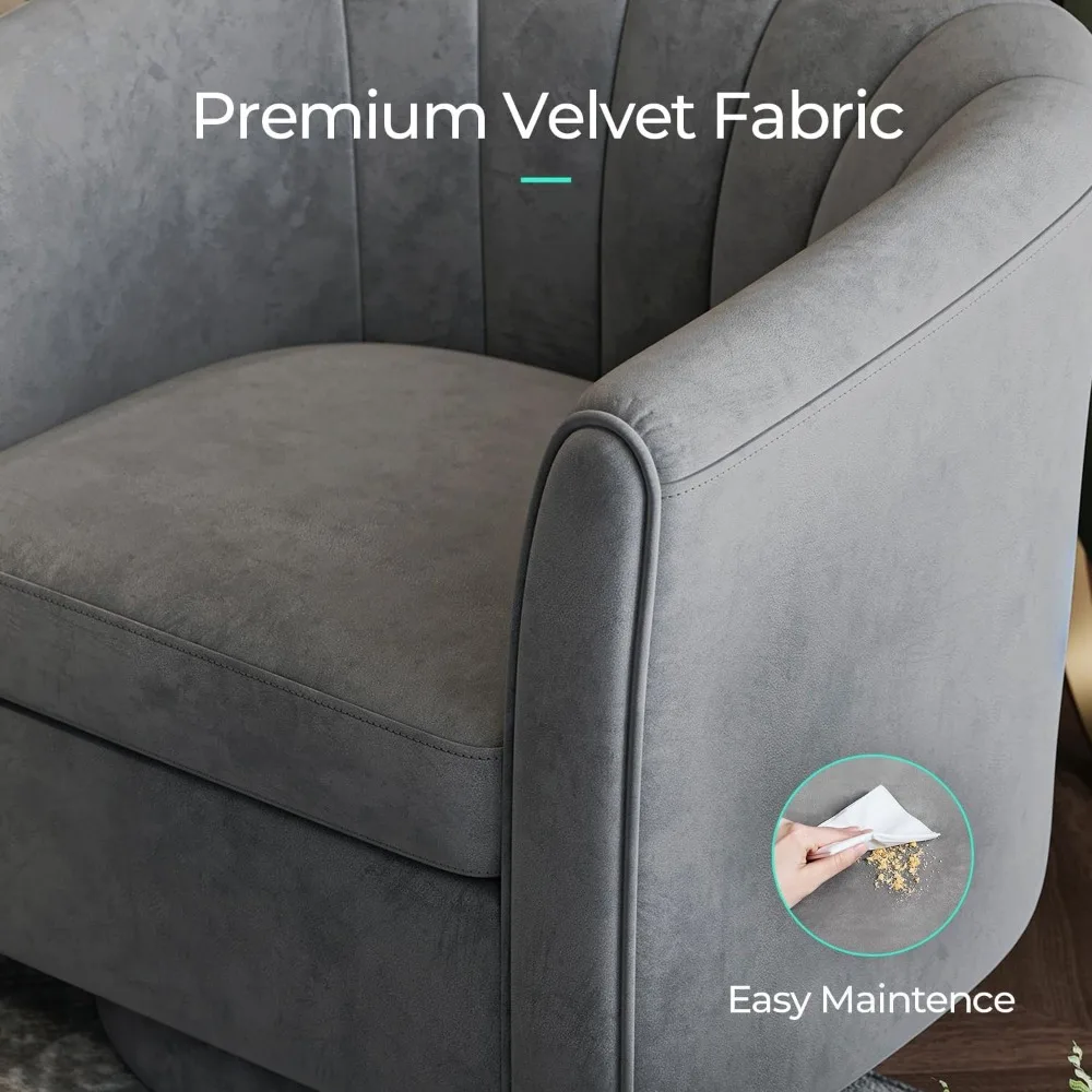 Velvet Armchair with Ottoman: This modern swivel chair is made of high-quality velvet fabric and high-density foam cushions, which feels soft and luxurious. The swivel chair set includes a ottoman, which provides excellent support for long-term sitting. Perfect for relaxation, it easily combines style and comfort