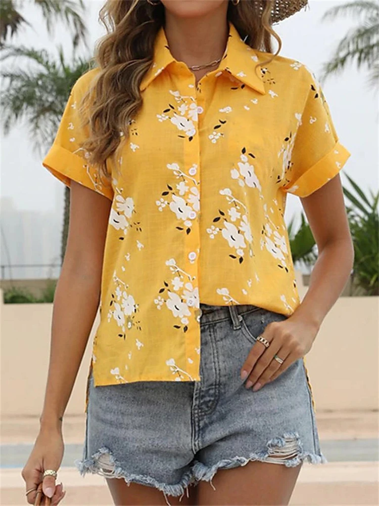 Temperament Leisure Women's Short-sleeved Shirt Fashion Loose Womens Shirt Elegant Short-sleeved Blouse Holiday Weekend Clothing