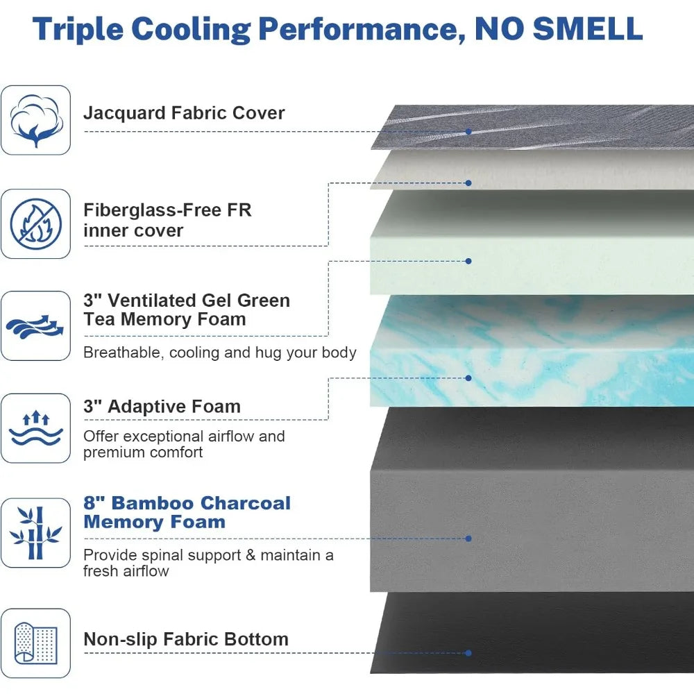 Twin XL Adjustable Bed Base with Mattress, 14 Inch Grey Gel Memory Foam Medium-Firm Mattress in Box, Adjustable Bed Frame with T