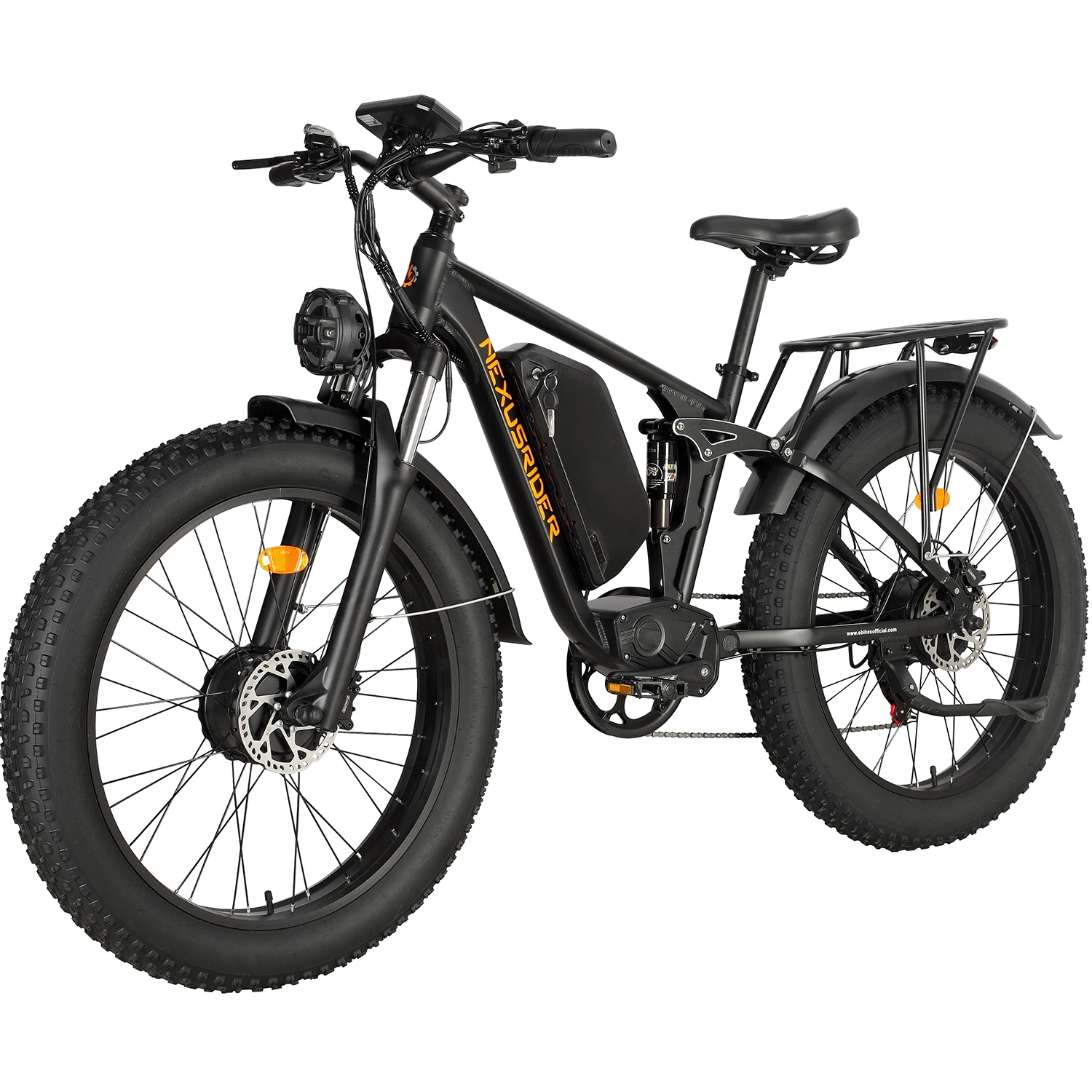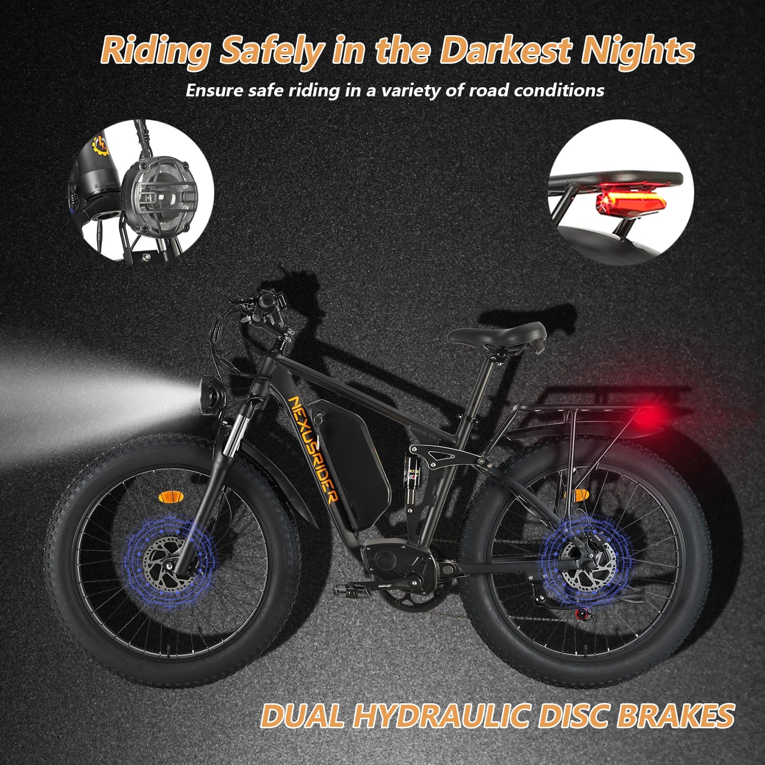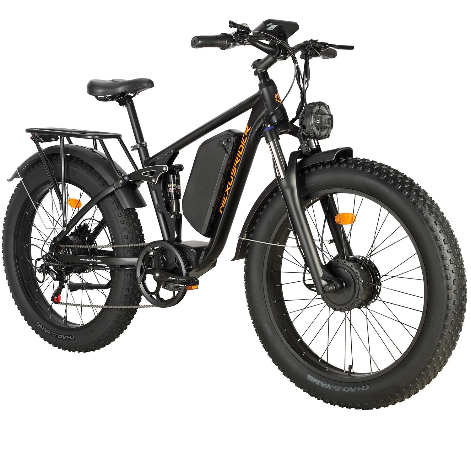 US Warehouse 26" Fat Tire Electric Hybrid MTB Bike Dual Motors Center Controller 48V 22.4AH 2000W Features Rear Shock Absorber