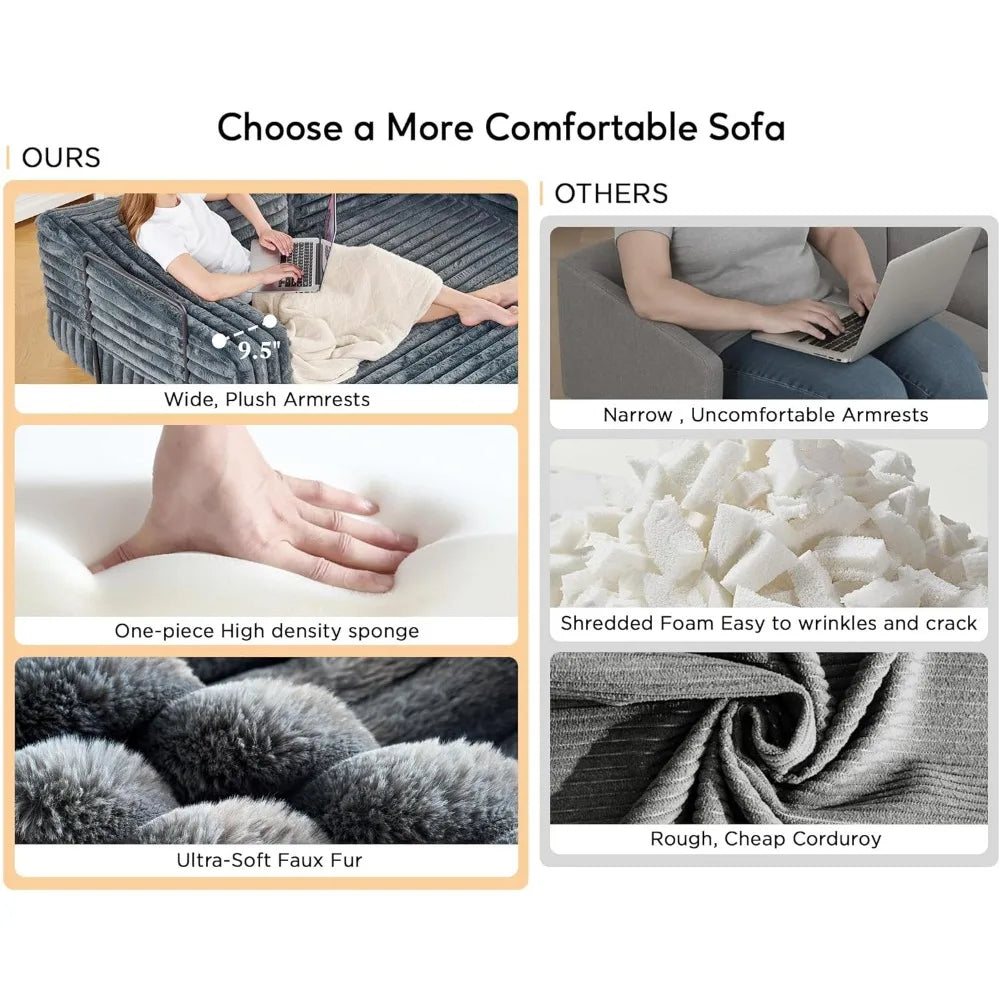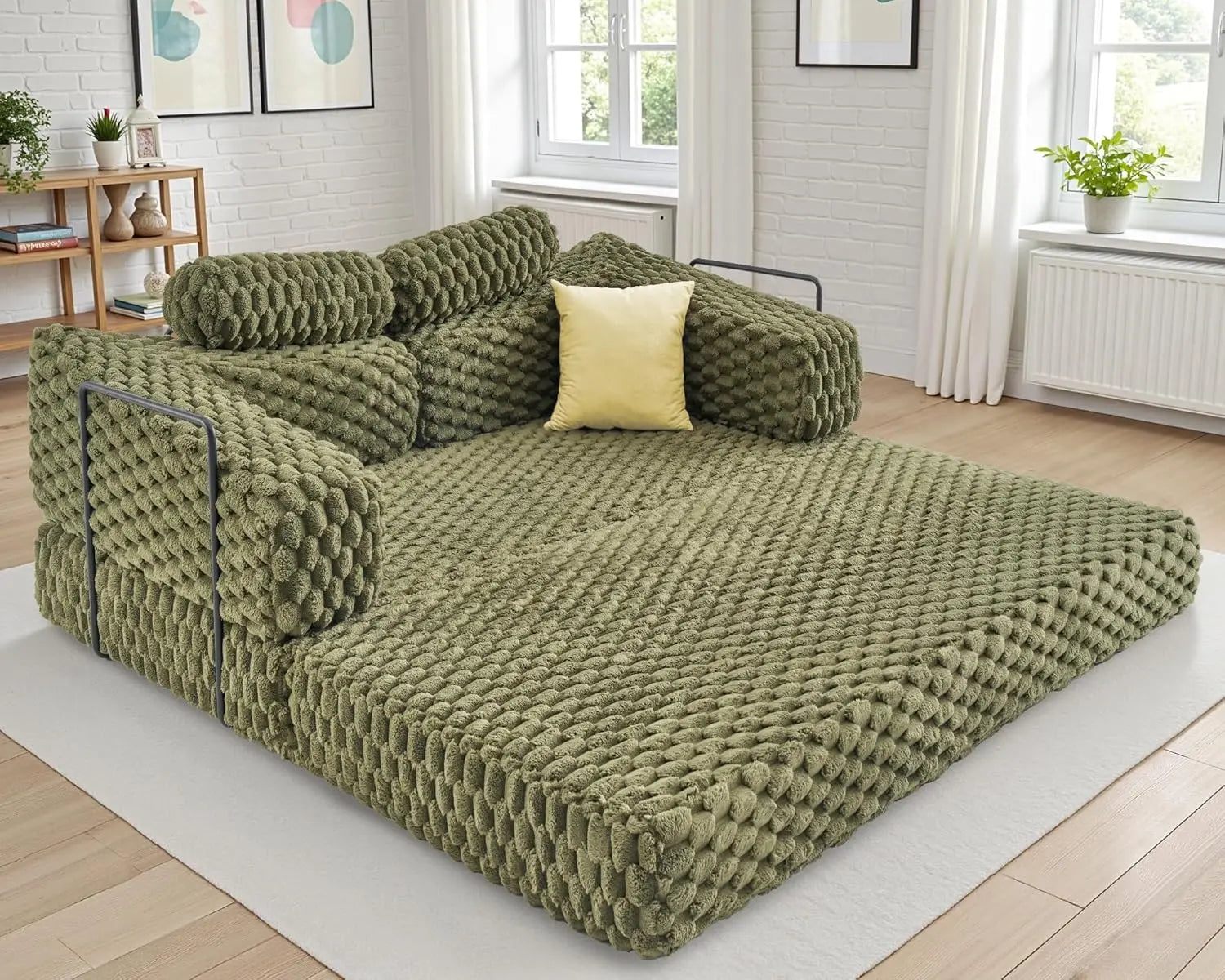 VanAcc Foldable Sofa Bed, Convertible Floor Sofa with Plush Faux Fur, No Assembly Mattress Couch for Living Room