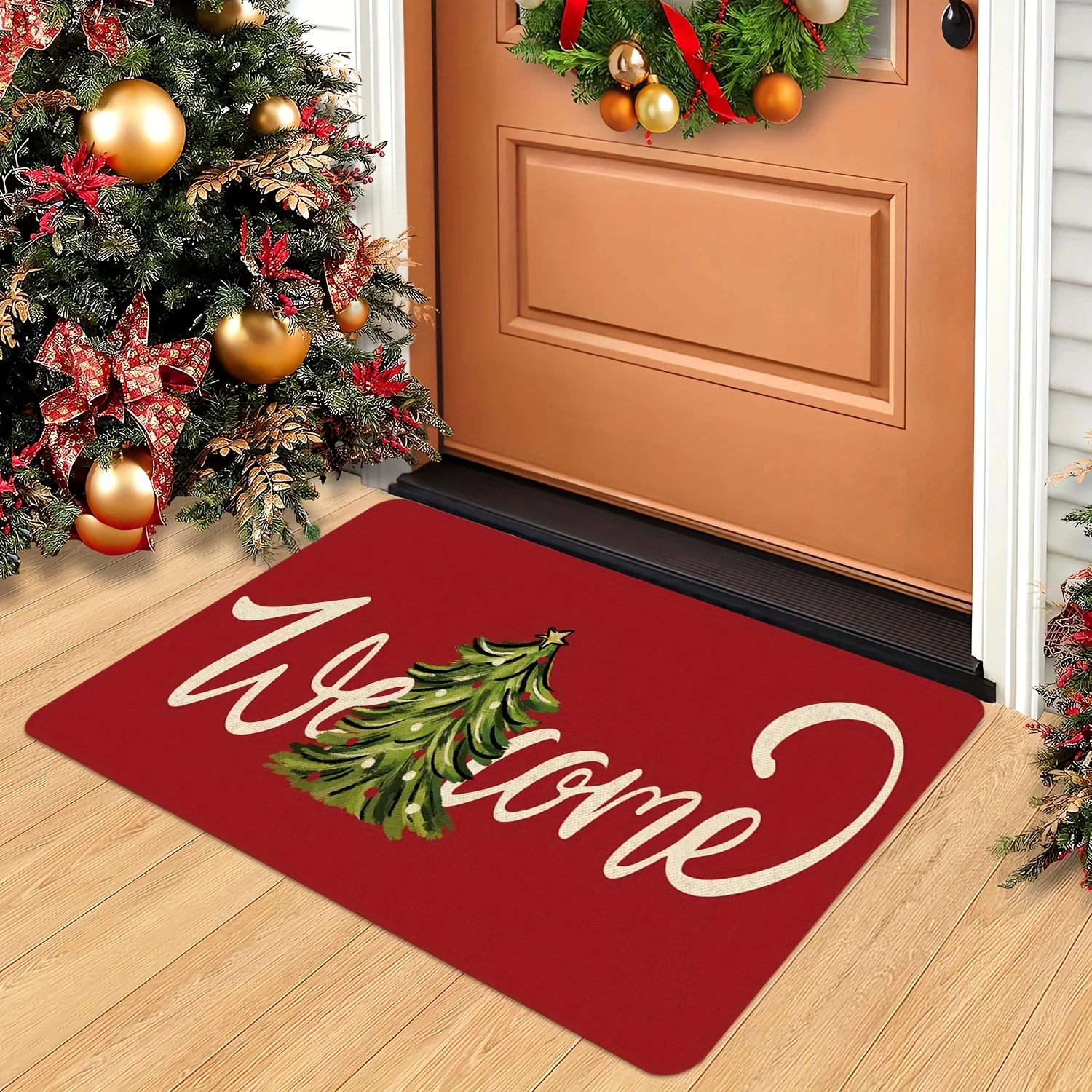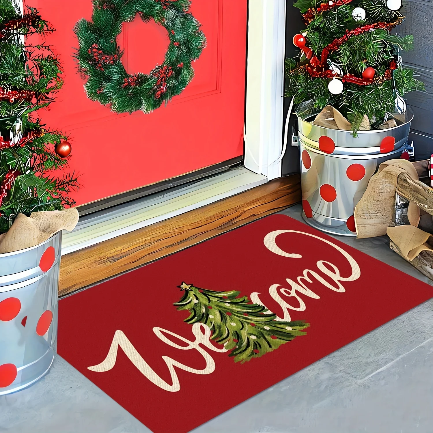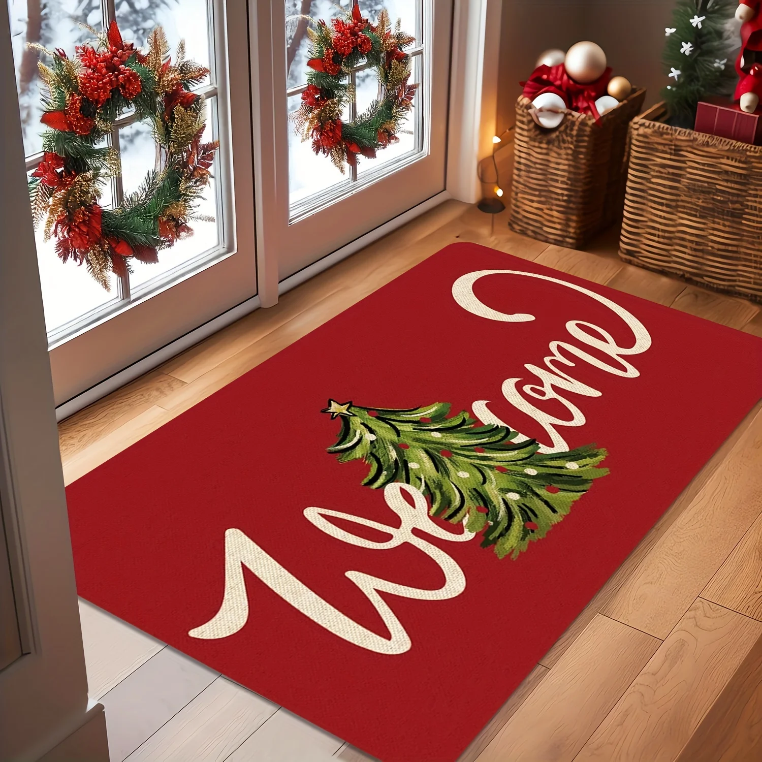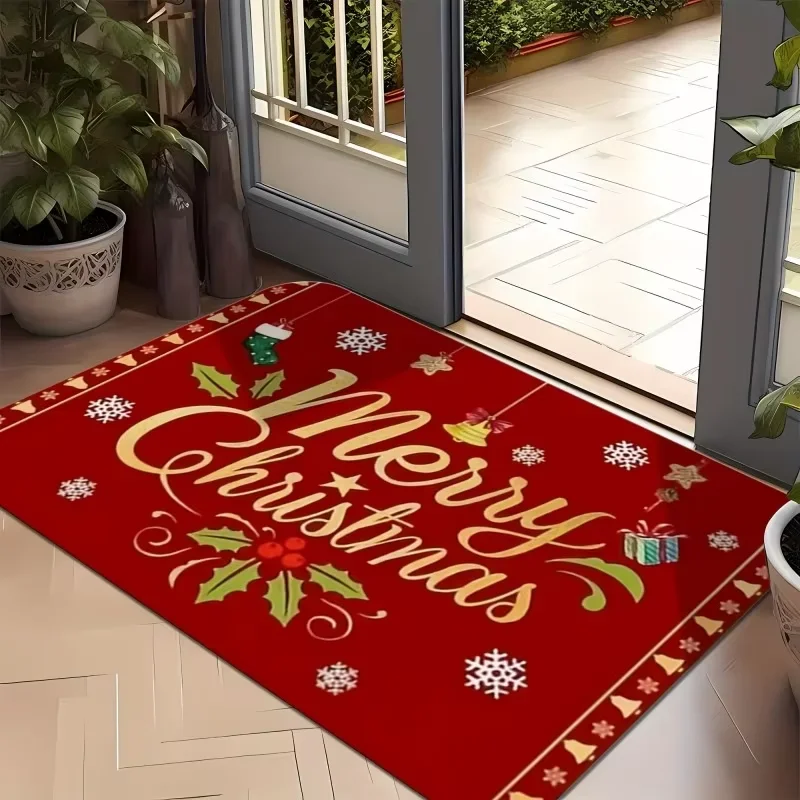 VIKAMA Christmas Carpet Red Festive Carpet Soft Living Room Carpet Rug For Bedroom Doormat Welcome Mat Outdoor Carpet Home Decor