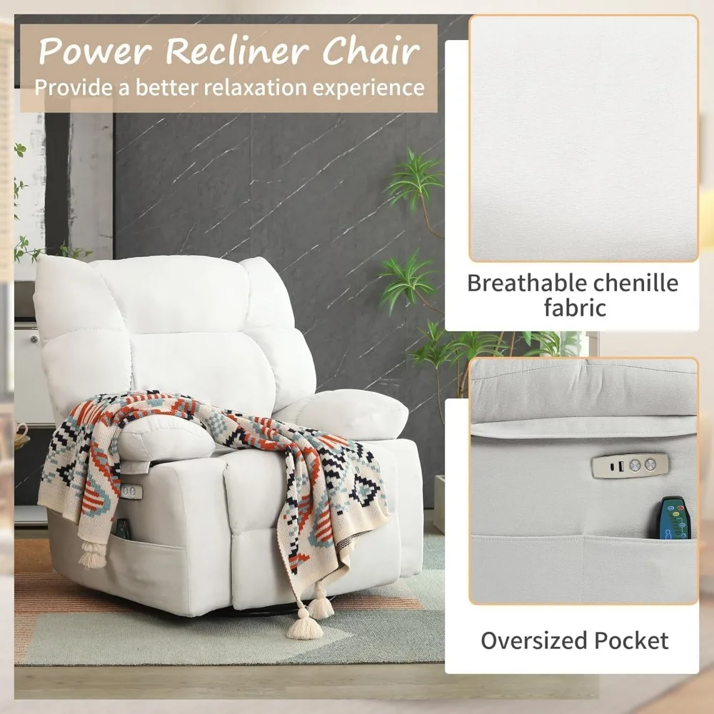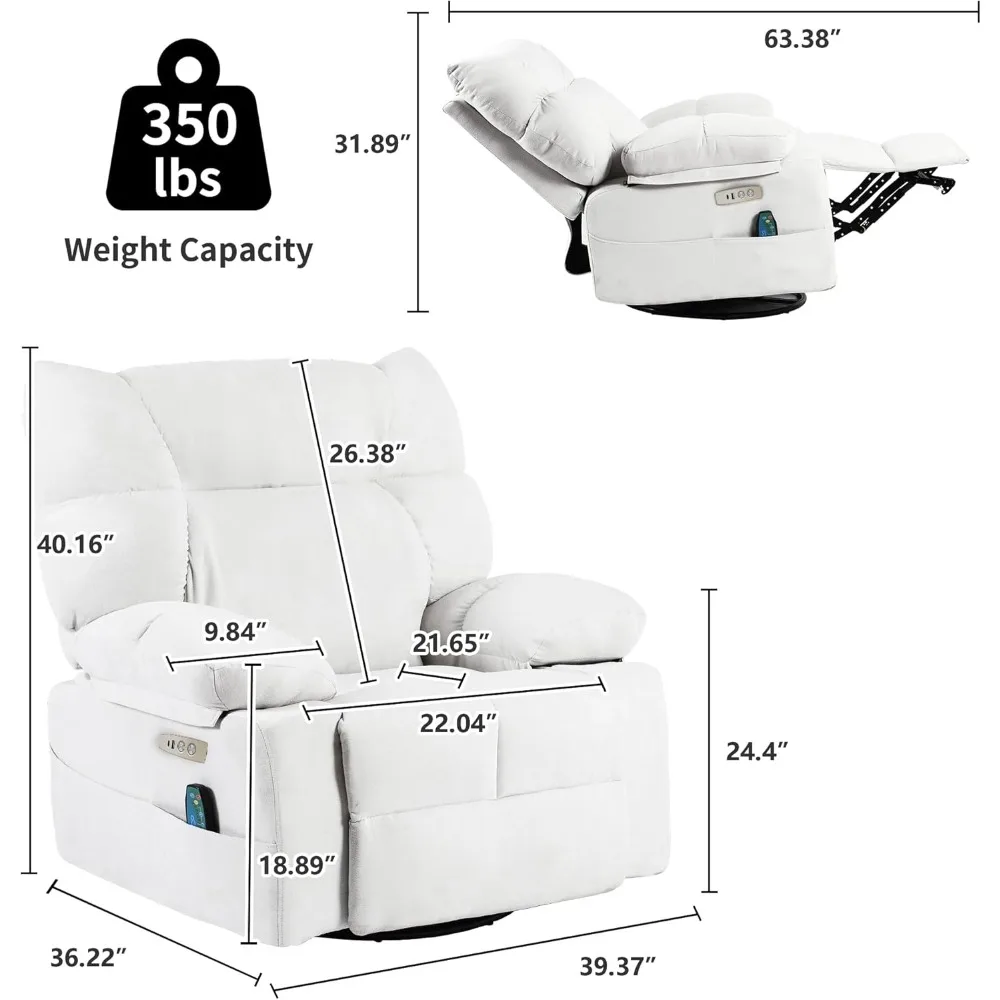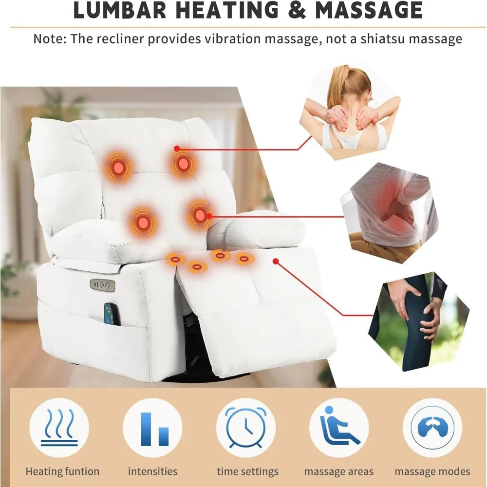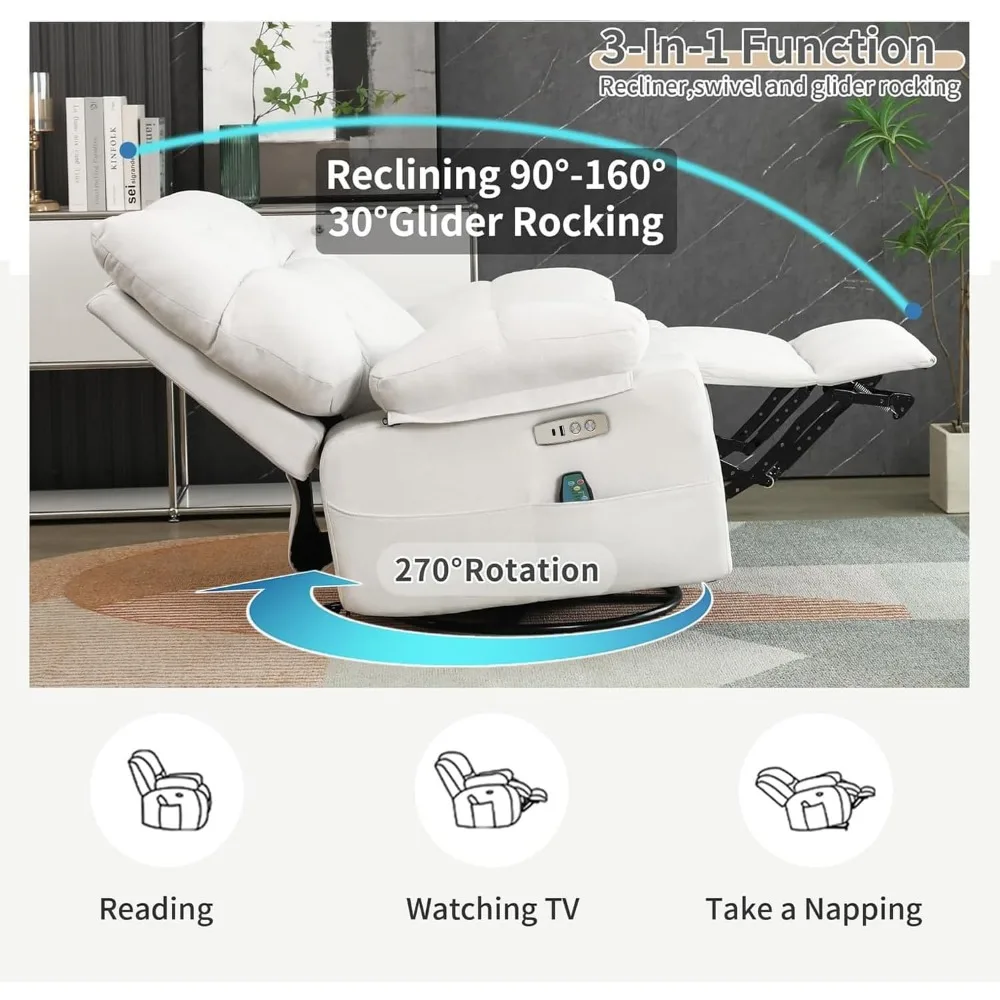 White Power Recliner Chair, Swivel Rocking Recliner Chairs for Adults with Massage and Heated, Soft Single Reclining Swivel Sof