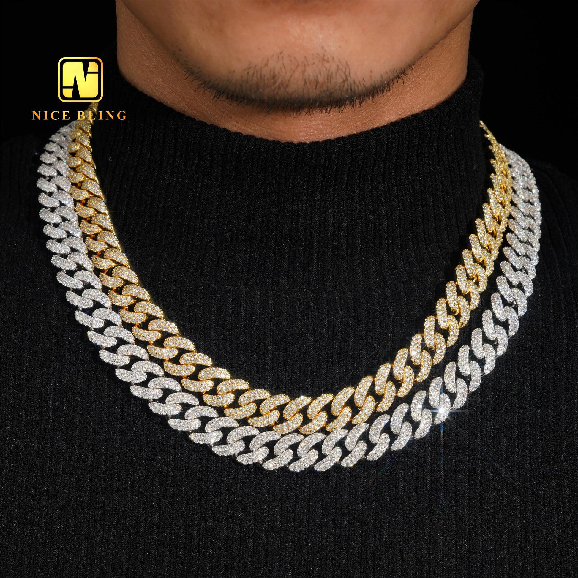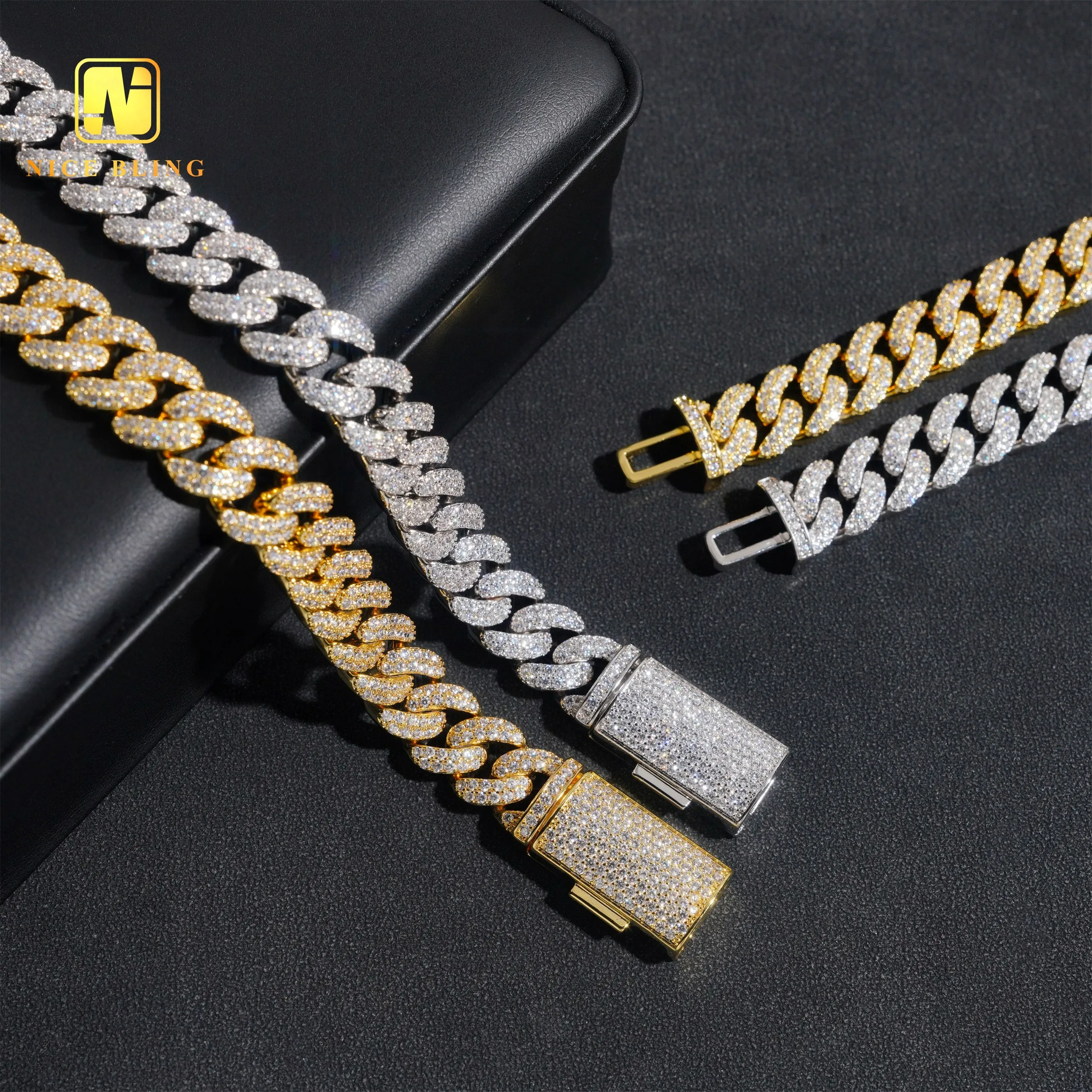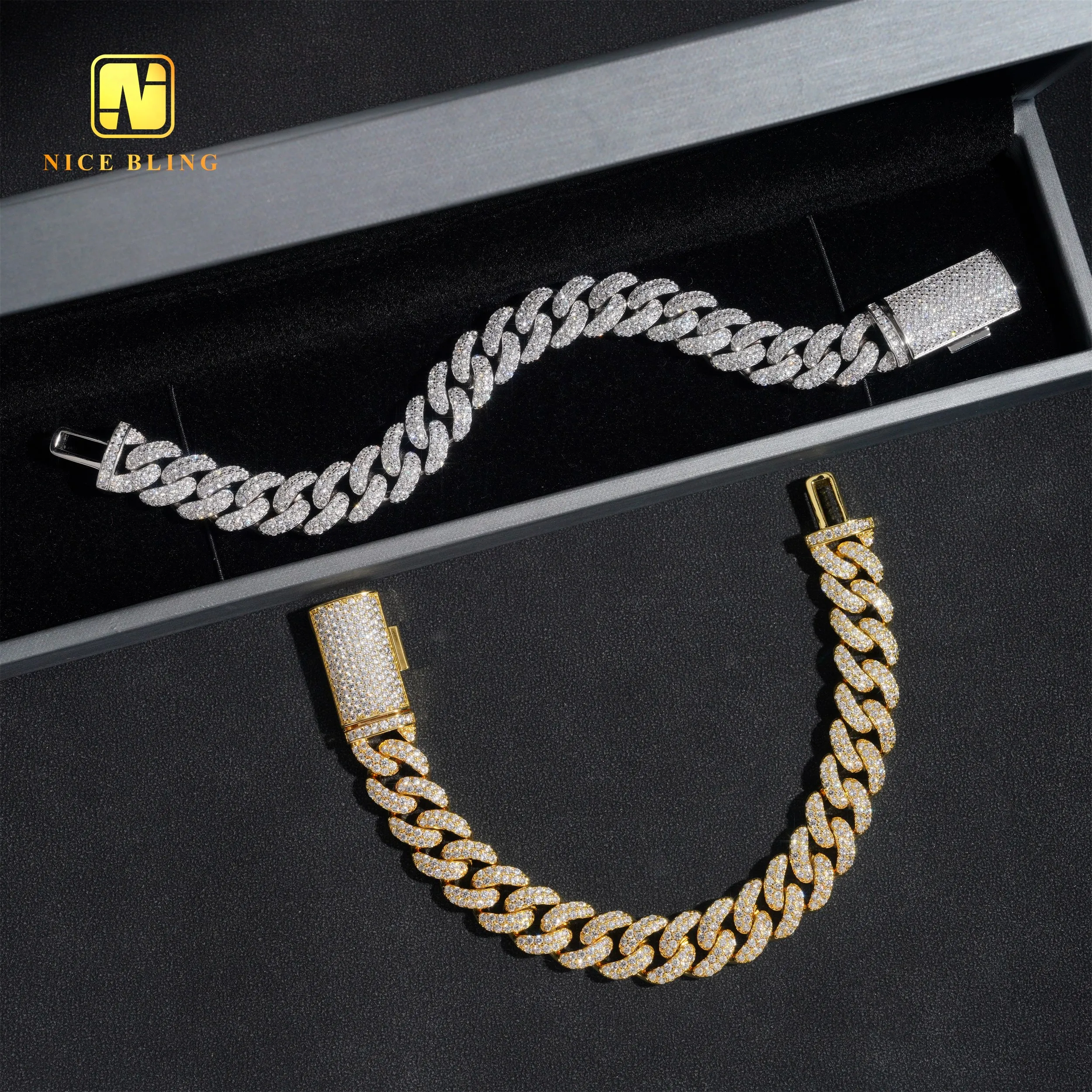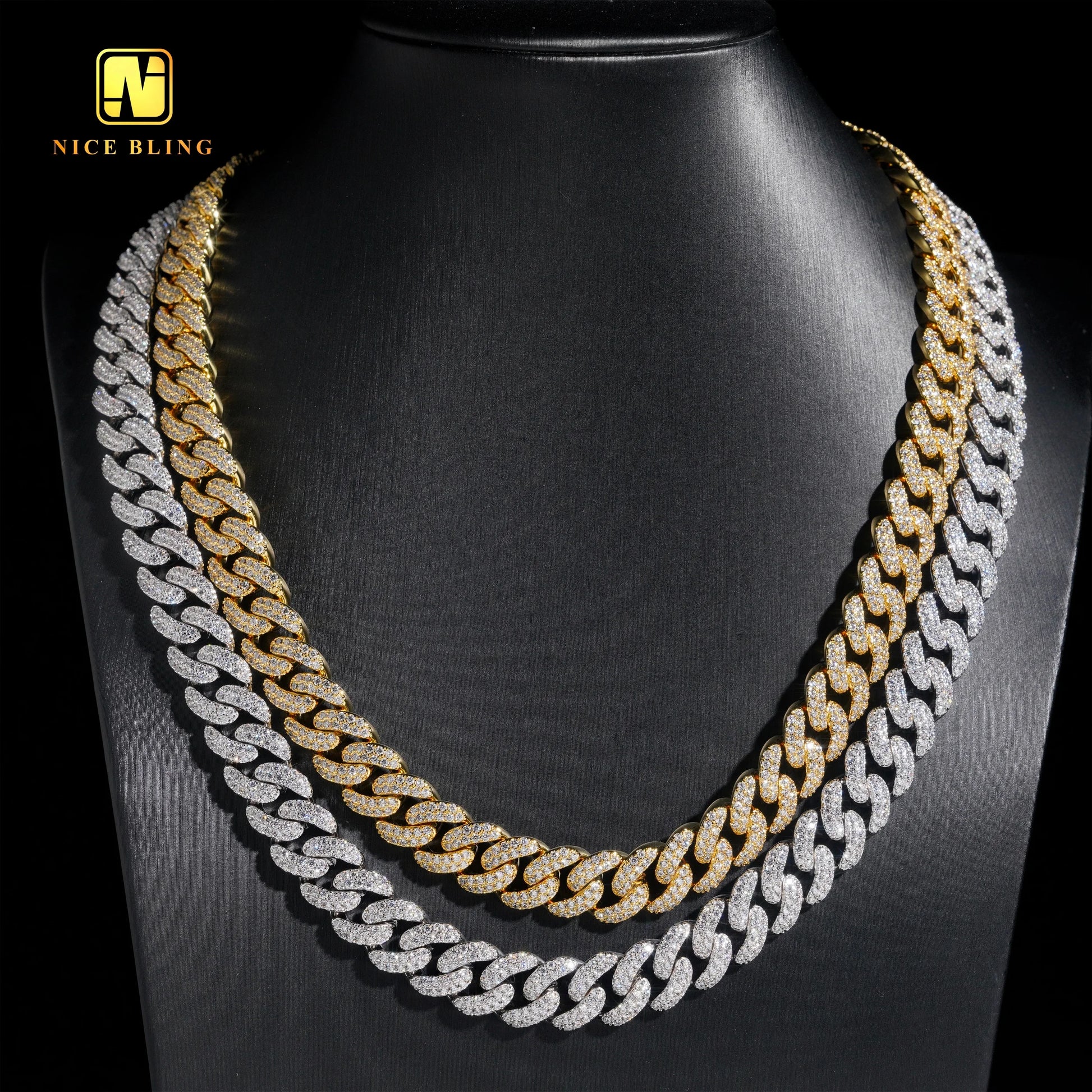 Wholesale Iced Out Hip Hop Necklace 2 Rows Round Shape 13mm Cuban Link Chains Gold Plated Brass 5a CZ Diamond Necklace Bracelet