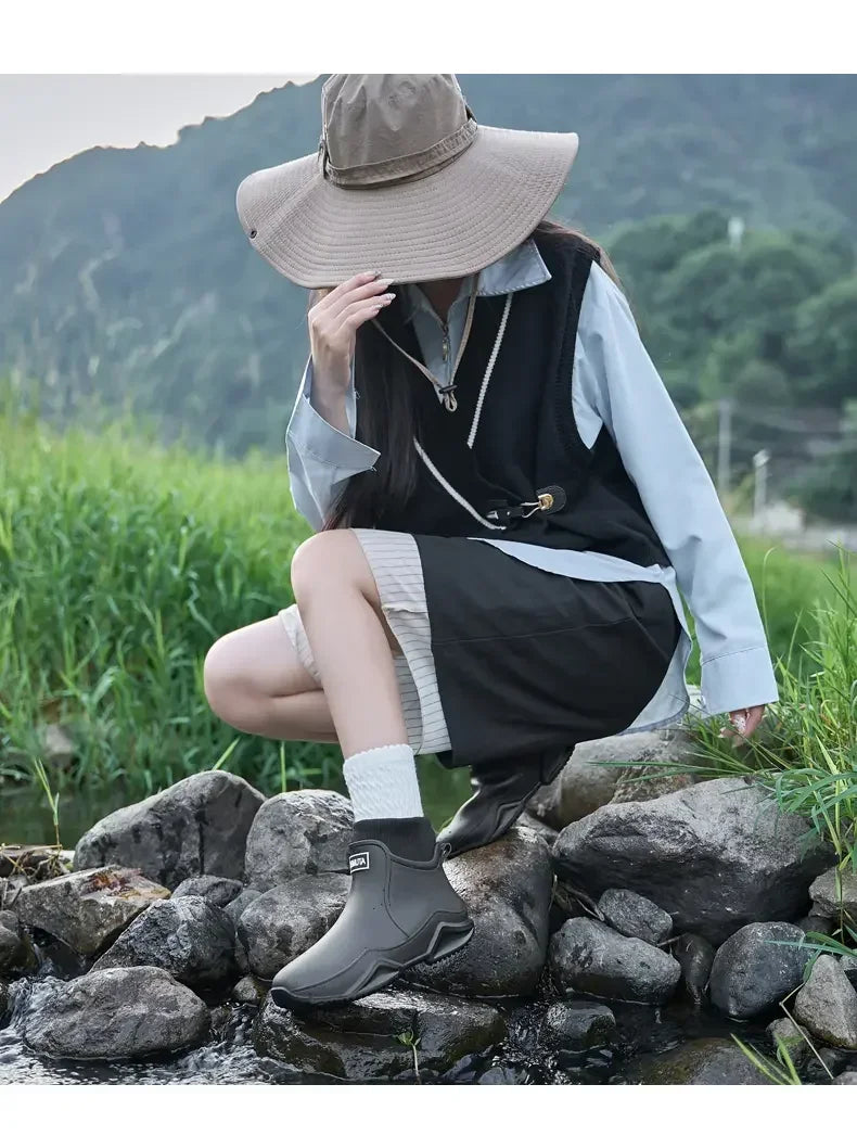 Winter Windproof Cotton Rain Boots Men Warm Light Ankle Rainboots Fashion Black Slip on Rain Shoes Men Waterproof Work Boot 2024