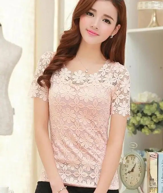 women tops Lace Shirt Blusas Femininas Blouses & Shirts New Fashion Short sleeve Women Blouse plus size Women Clothing 5XL