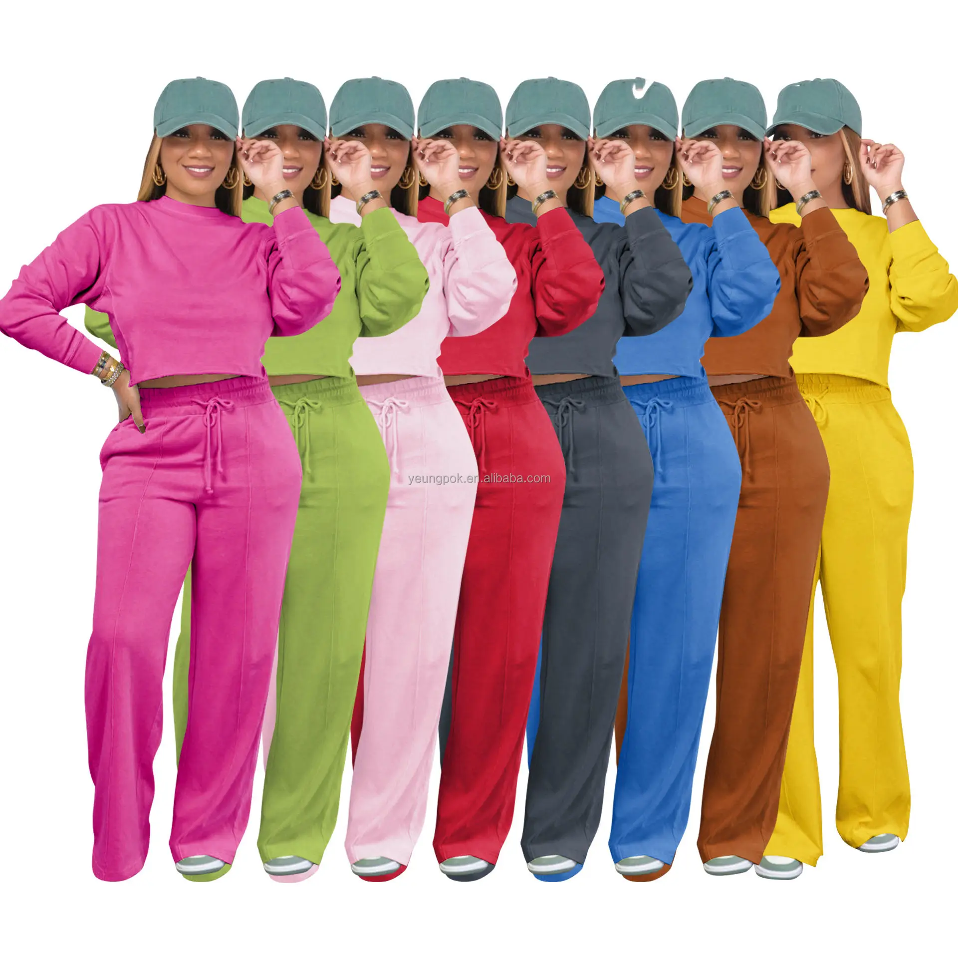YP Women's Casual 3XL Plus Size Autumn Tracksuit Long Sleeve Crop Top Hoodie Long Pants Solid Color Two Piece Active Top Set